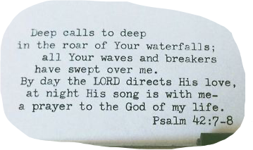 Psalm 427-8 English Standard Version 7 Deep calls to deep at the roar of your waterfalls. All your waves and breakers have swept over me. All Your breakers and Your waves have rolled over me.