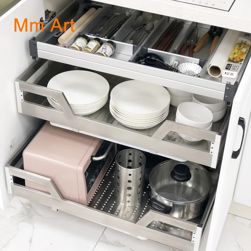 Stainless Steel Drawer Basket Kitchen Cabinet Basket Vegetable Basket Drawer Storage