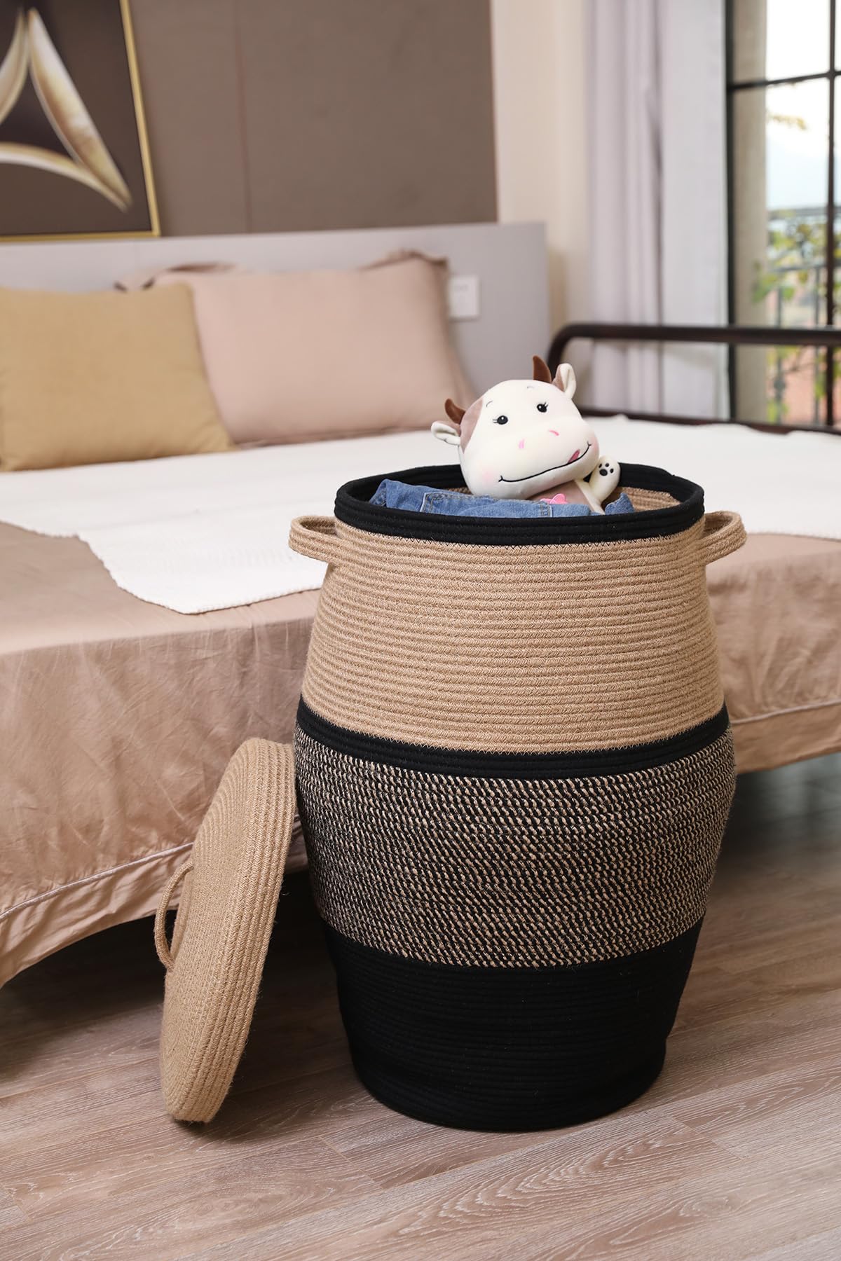 26 X20 Tall Extra Large Storage Basket With Lid Cotton Rope Storage Baskets Woven Laundry Hamper With Cover Toy Storage Bin Baby Nursery Jute Black Mix Black With Lid Amazon Co Uk Baby Products